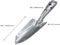 球根の植え付け深さが解る目盛付。握り部の裏面に補強板を入れているので丈夫です。収納に便利な吊金具付きです。花壇・プランターなどの土入れ、土出し、苗の植え替え球根の植え付け作業時に。