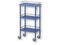 ●材質:ステンレス(SUS304)●キャスター:φ75mm(ストッパー無し)●高さ(手摺含む):900mm●棚間隔:上段/289mm、下段/282mm●重量:6.7kg●耐荷重:30kg/段●フック付き(180度回転収納タイプ)●足パイプ径:φ25mm●色:ブルー●幅×奥行×高さ(mm):450×300×850