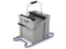 両足で固定できるステップ付きで、手を濡らさずしっかりとモップが絞れます。ホースホルダー付き。