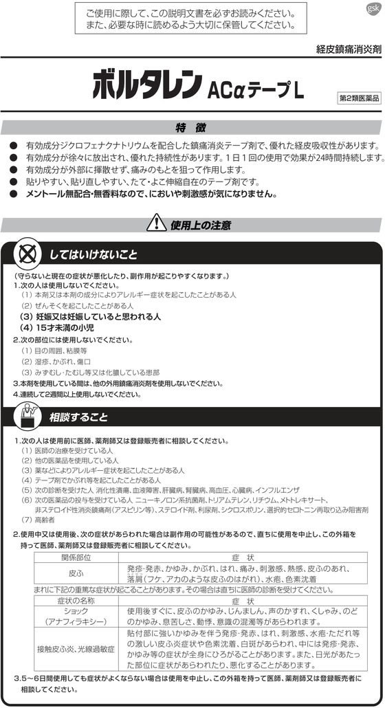 ★薬)グラクソ・スミスクライン ボルタレンACαテープL 7枚【第2類医薬品】