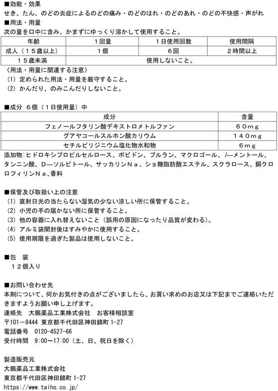 ★薬)大鵬薬品工業 ピタスせきトローチ 12個【第2類医薬品】