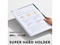 厚手のPP製表紙と書類脱落防止のフラップで大切な書類をしっかりと保護する、スーパーハードなホルダー。カバンに入れても折れ曲がらず、大切な書類の持ち運びにおすすめ。背面にはペーパーストッパー付きでクリップボード代わりにも。マチ付きでA4コピー用紙を最大100枚収納可能。A4クリアーホルダーもそのまま入れられる。書類の仕分けに便利なインデックス付き。案件ごとにカラー別で使い分けるのもおすすめ。