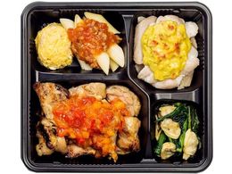 ニチレイフーズ 気くばり御膳PowerDeli 炭火焼チキンのサルサ風ソース&豚肉のカレーソースプレート 240g